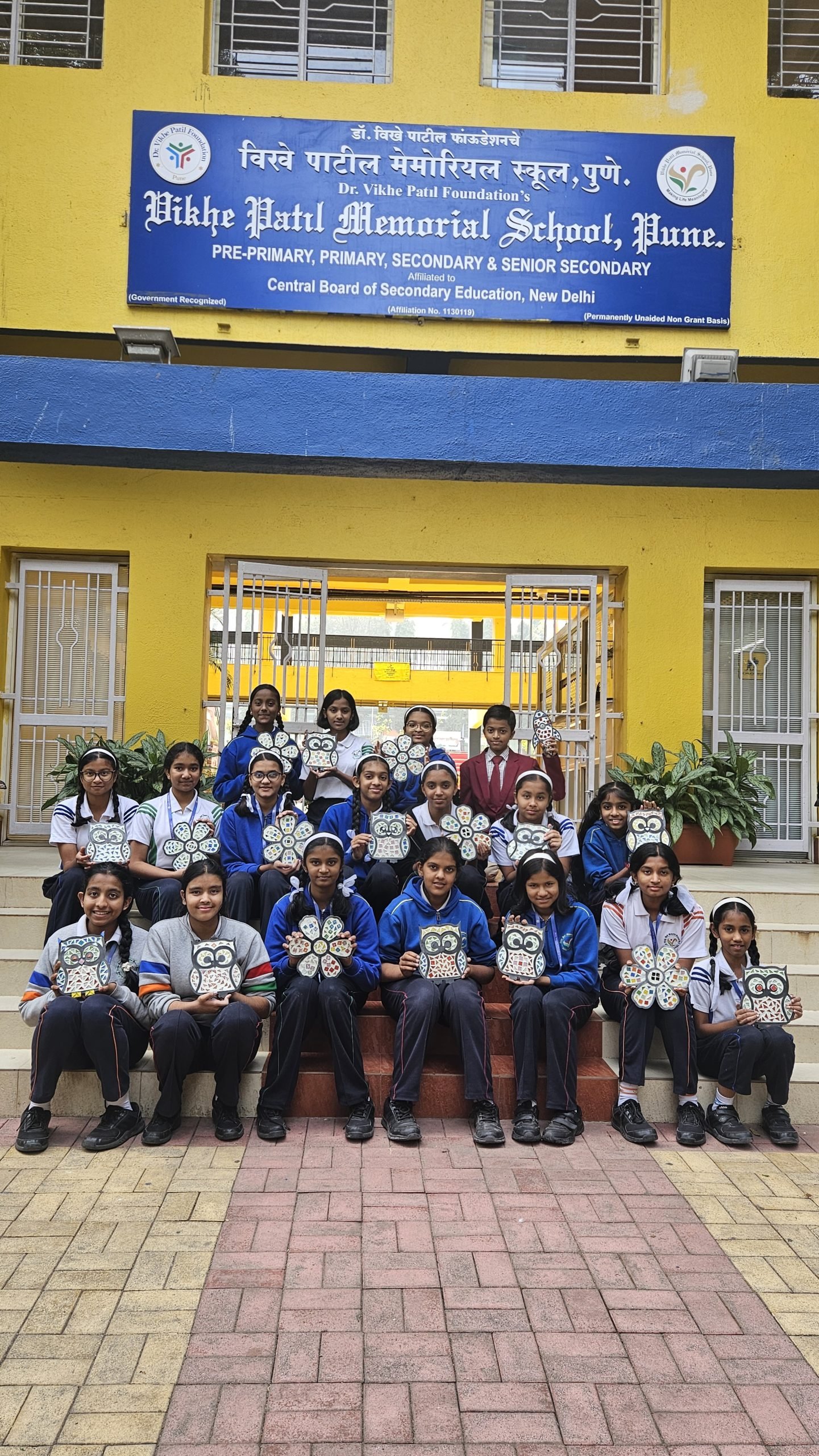 The session was guided by the resource persons, Ms Bhakti Sambare and Ms Arohi Sambare, who patiently introduced the students to the basics of mosaic art and encouraged them throughout the activity. Students were shown simple examples to help them understand the idea of creating pictures using small pieces. Each child was given a base sheet, tile pieces, and colours. They planned their designs on the mdf cutouts first and then carefully arranged the pieces to form patterns, shapes, and simple pictures.