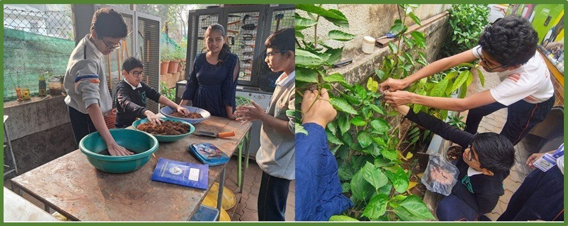 This thought truly came to life during the last club activity. The activity encouraged students to connect with soil, plants and organic compost through self-learning. The session began with an introduction of various terms related to gardening and plant pathology. The students were introduced to soil culture and the method to make it for efficient fertilization and optimum yield.