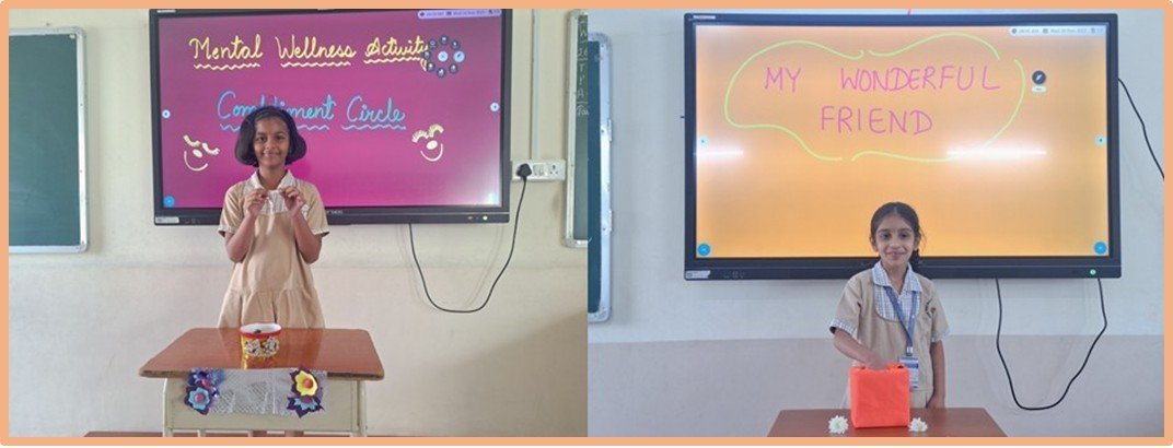The objectives of mental health activities for students are to improve emotional regulation, boost self-esteem, develop coping mechanisms and enhance academic performance. These activities aim to foster skills like emotional awareness and regulation, build stronger social connections, and help students manage stress effectively so they can cope with life’s challenges, learn well, and contribute to their community. Keeping these objectives in mind, the students of classes 1 to 3 had “Compliment Circle Activity” as their Mental Health Activity for the month of November.